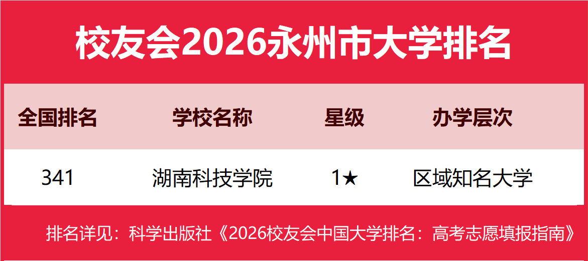 | 校友会2026永州市大学排名,湖南科技学院、永州职业技术学院第一 | |||