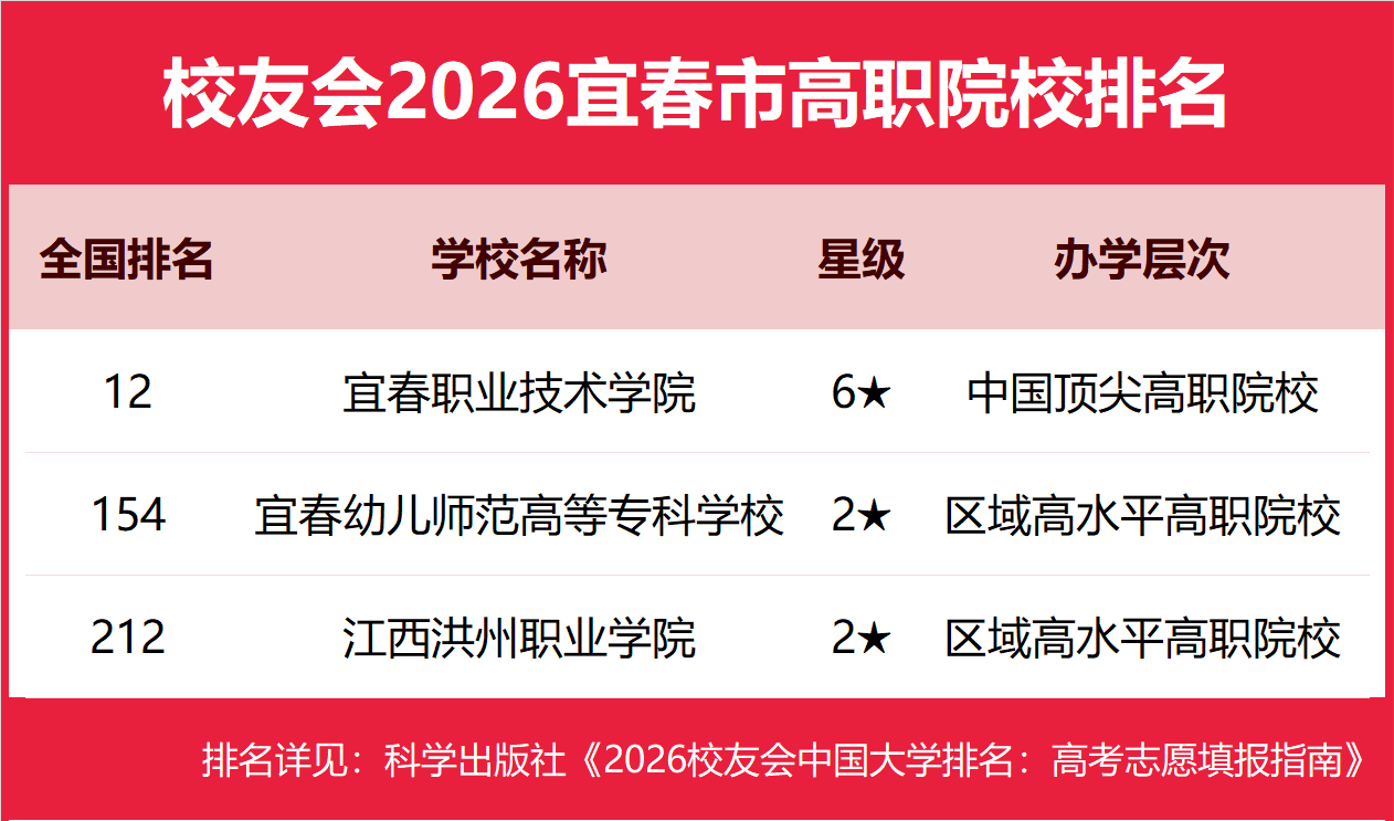 | 校友会2026宜春市大学排名,宜春学院、宜春职业技术学院第一 | |||
