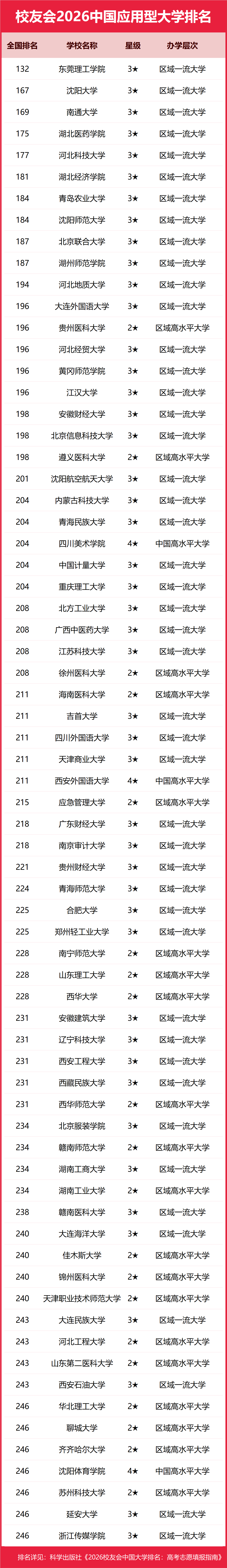 | 校友会2026中国应用型大学排名,东莞理工学院、沈阳大学、南通大学前三 | |||